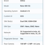 📊 Infinix Note 40X 5G – मुख्य स्पेसिफिकेशन (Quick Specs Table)